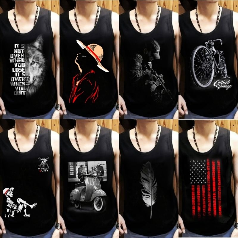 TERMURAH singlet isi 4 dan 5 pc combed pria warna hitammotif gambar dan tulisan