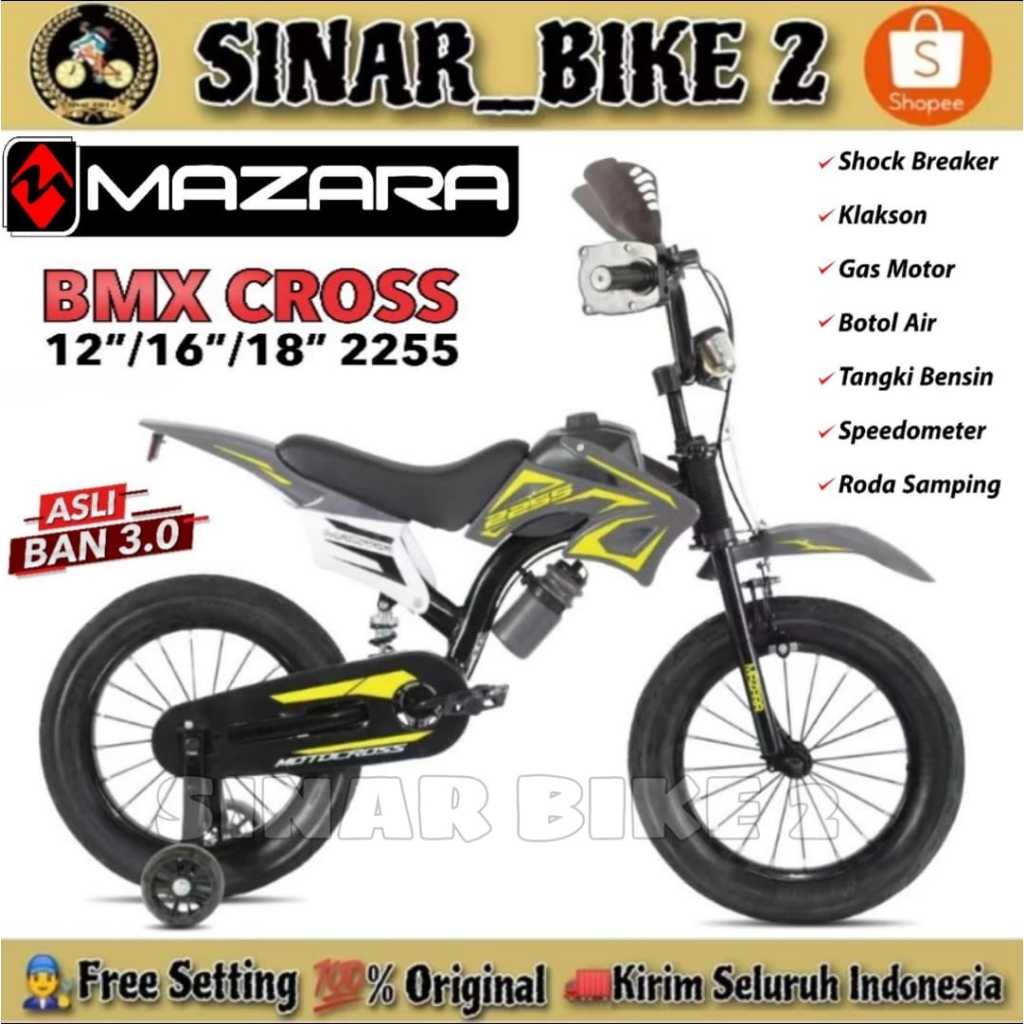 Sepeda Anak Laki Ukuran 12 16 18 Inch BMX ATLANTIS 88 MC // MAZARA MZ 2255 Suspensi Per Tengah / MAZARA MZ 2233 // BNB GP TRAIL Rem cakram Ada suspensi Model Motor Cross Trail Usia 2-8 Tahun