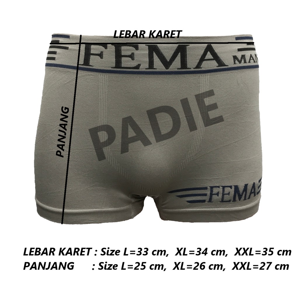 PADIe - 3 Pcs Celana Dalam/CD Boxer Pria Spandek Rajut FEMA 7778 / GUDA PREMIUM Tanpa Jahitan Size L,XL,XXL, XXXL