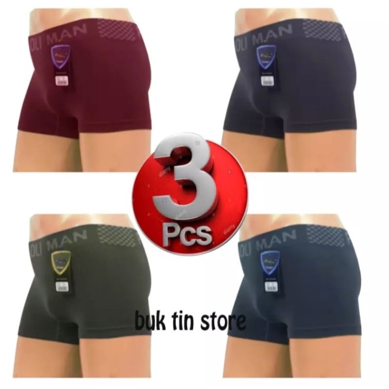 piaoli 3 pcs celana dalam pria boxer bahan rajut tanpa jahitan multiwarna