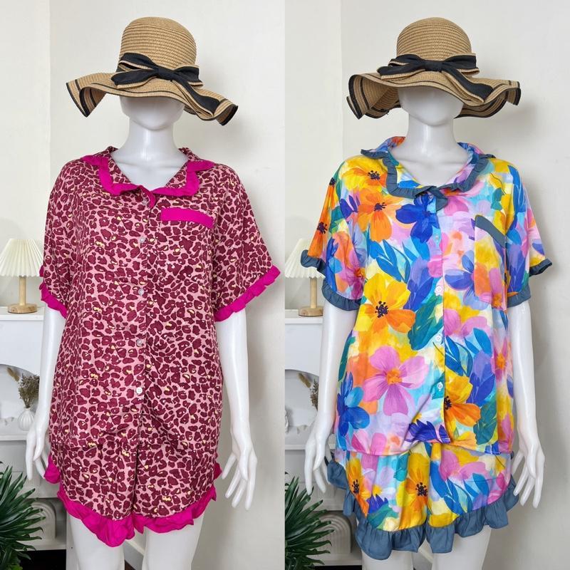 [New Product] Queen One Set Wanita Rayon Premium LD 120 cm Mix Motif & Polos Twill Setelan Celana Pendek / Queen Set Baju Dewasa