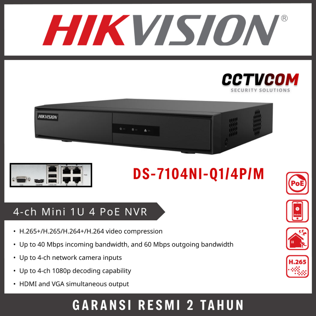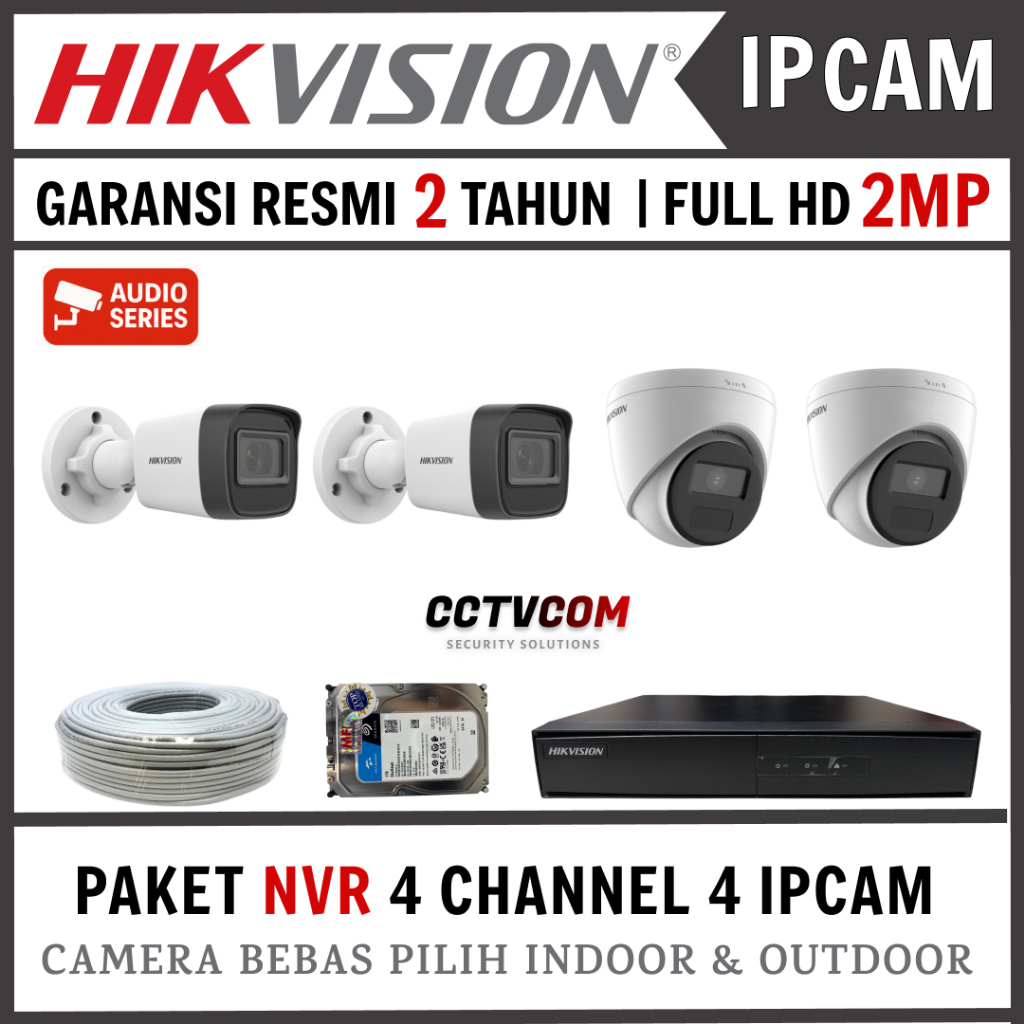 Paket IP Camera Hikvision 2MP PoE 4 Channel 4 Camera Infrared Audio series NVR Poe 1080P