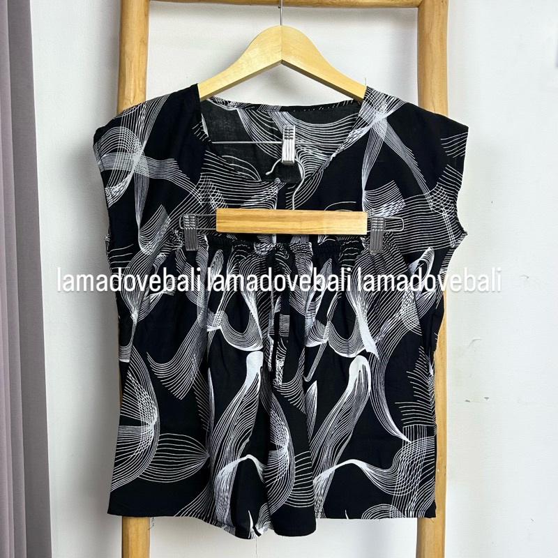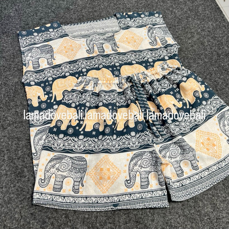 SETELAN BAJU TIDUR PENDEK MOTIF GAJAH BALI RAYON