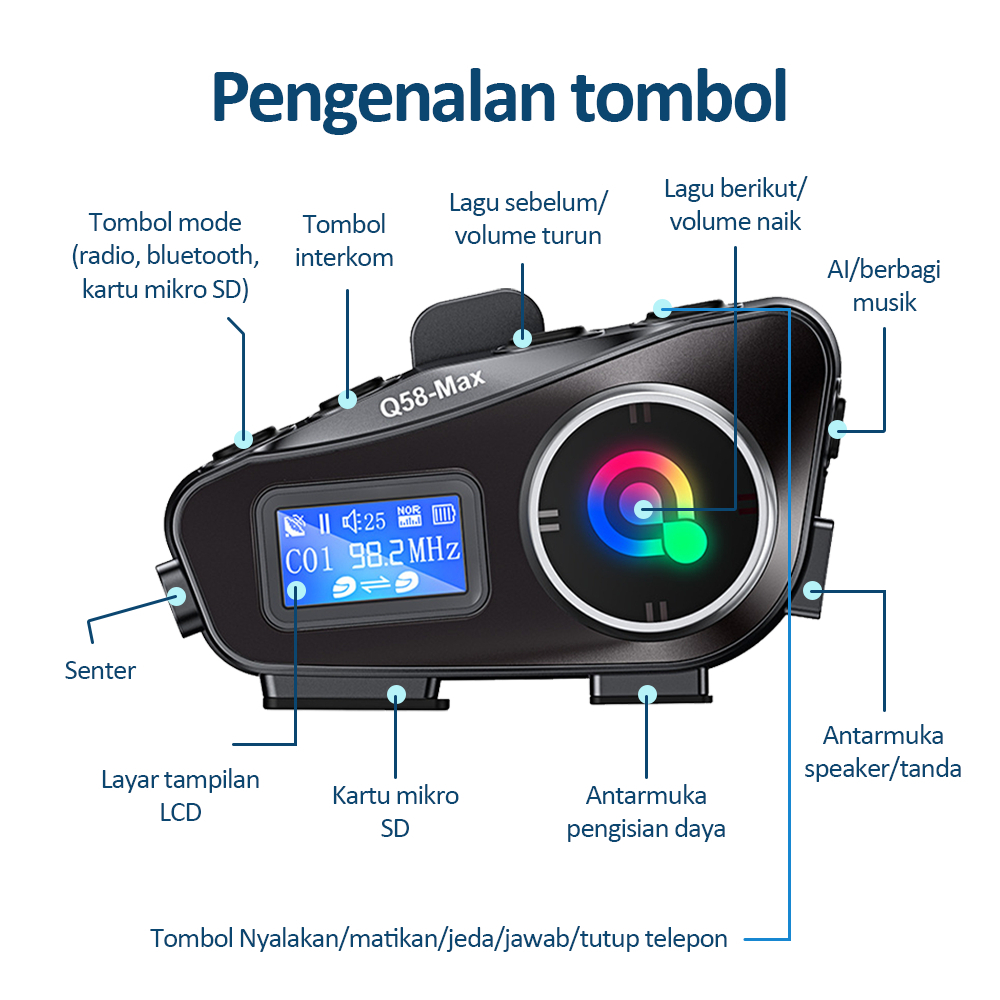 Q58Max Intercom Helm Intercom New Versi Bluetooth 5.3 Baterai 1000Mah Waterproof