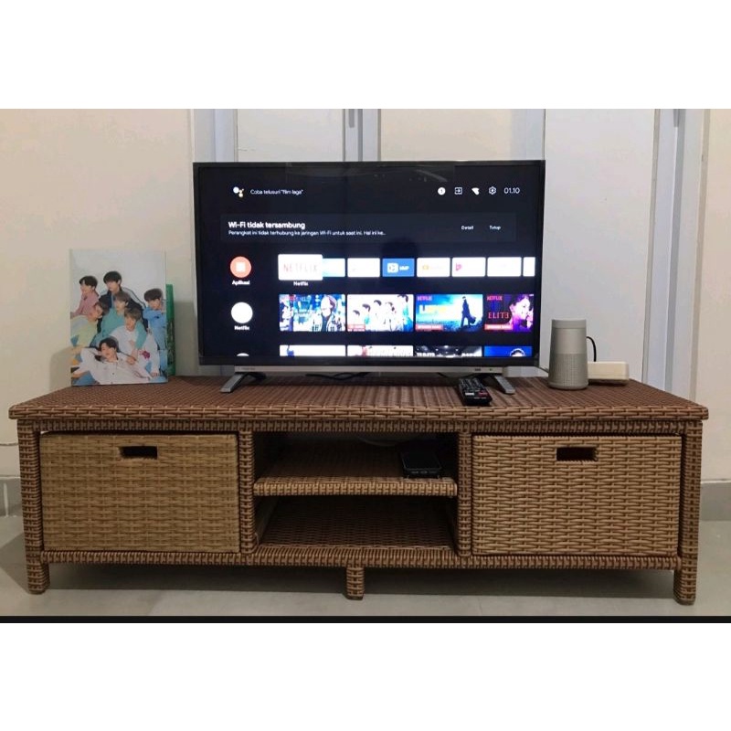 BEST SELLER Lemari Rotan Sintetis 2 Laci Dvd Meja Tv Rotan Sintetis Minimalis Murah