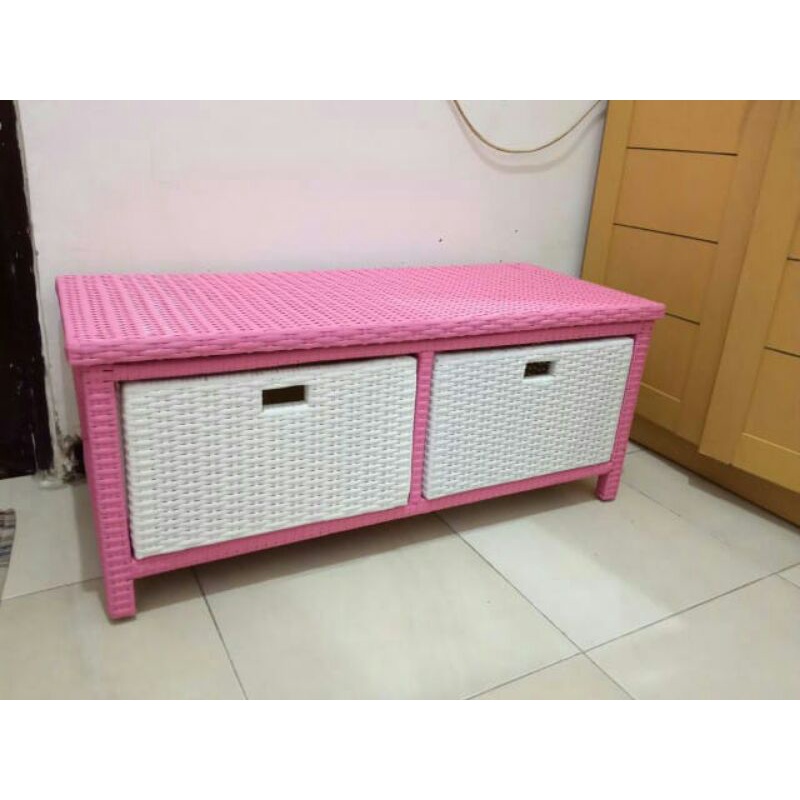 LEMARI MEJA TV LACI ROTAN SINTETIS 2 SAMPING