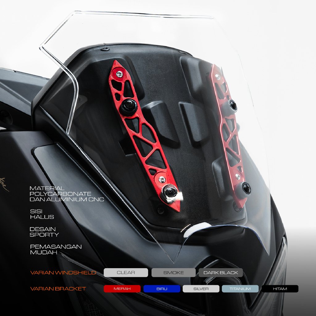 NEMO Windshield / Visor Onyx + Braket CNC Yamaha Nmax Turbo dan Neo