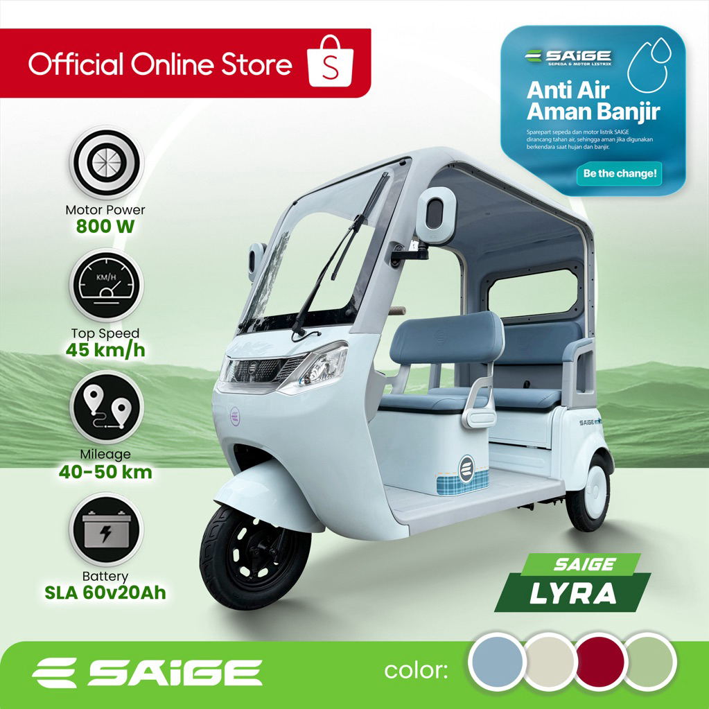 SEPEDA LISTRIK SAIGE LYRA RODA 3 + TIRAI PENUTUP KANAN KIRI