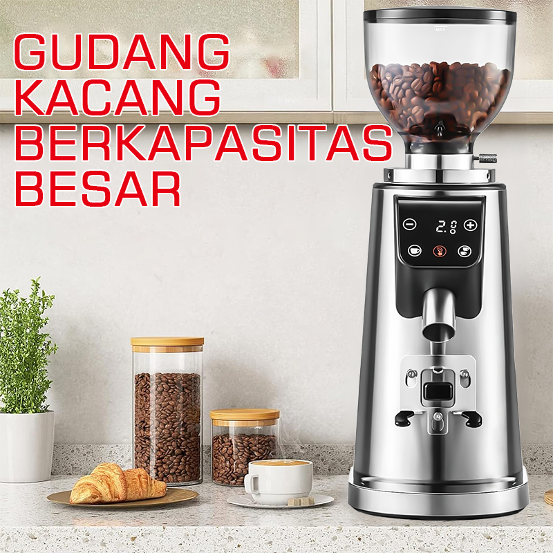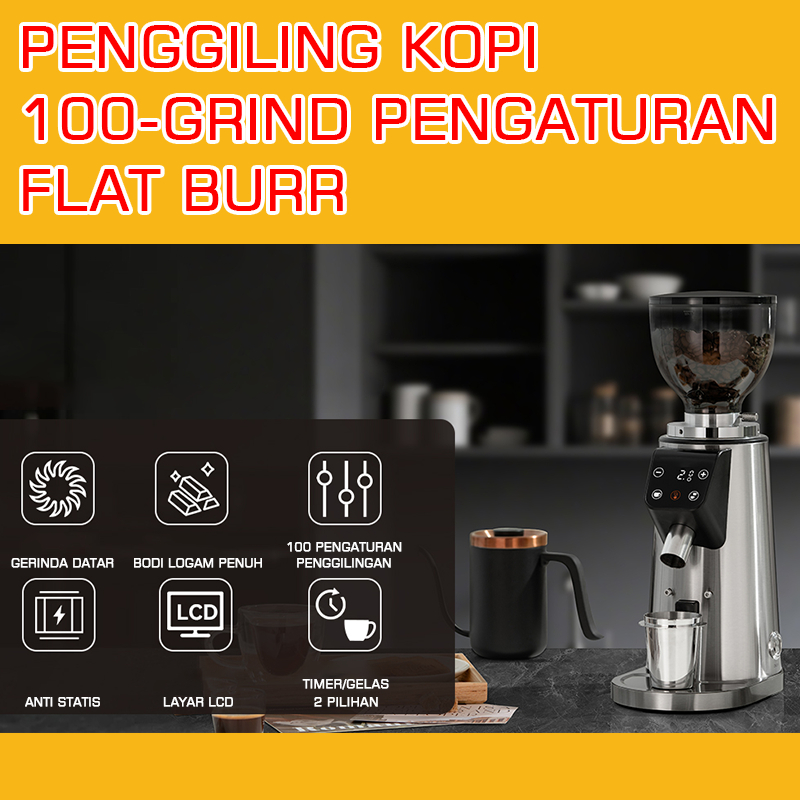 Lahome Penggiling Kopi Elektrik 100 Pengaturan Commercial Coffee Grinder Flat Burr With Portafilter Anti-static Metal Stainless Steel LCD Display