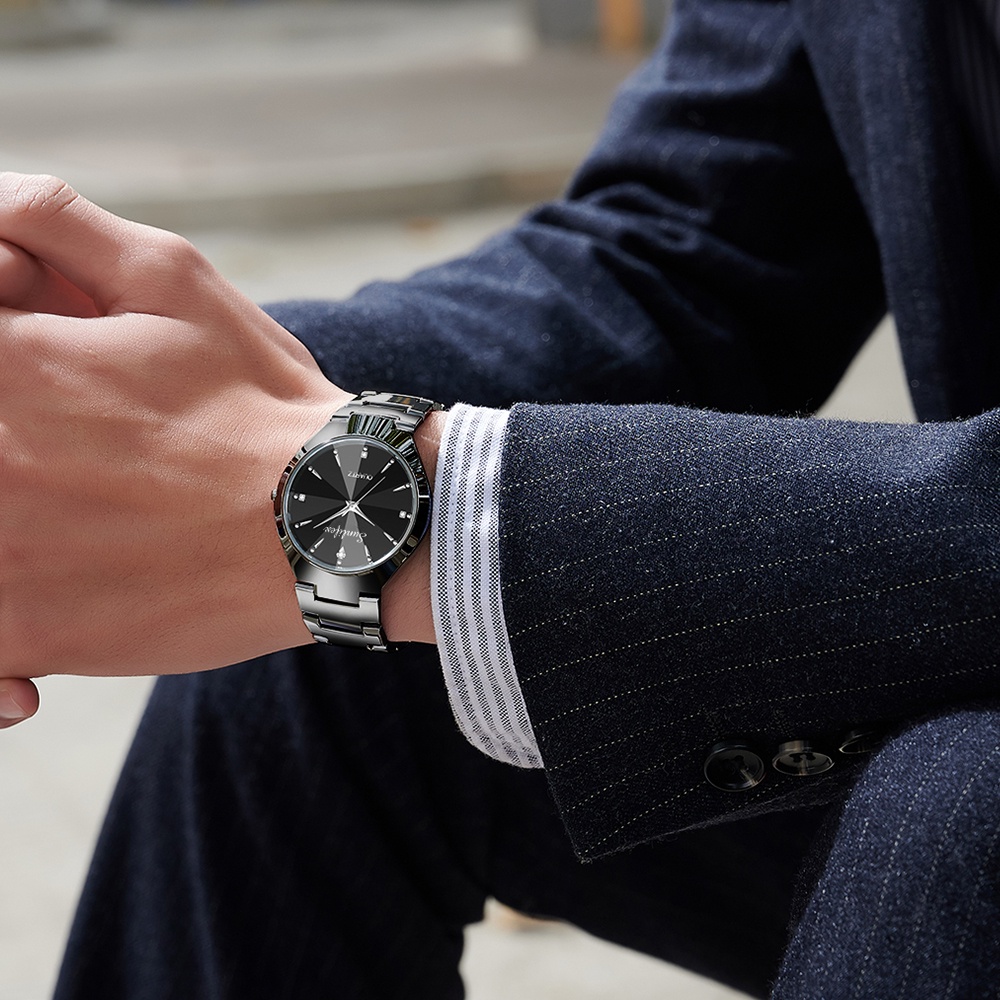 Jam Tangan Pria Sunlifex 9090 Kuarsa Klasik Bisnis Pria Tali Stainless Steel Jam Tangan Cowok Original