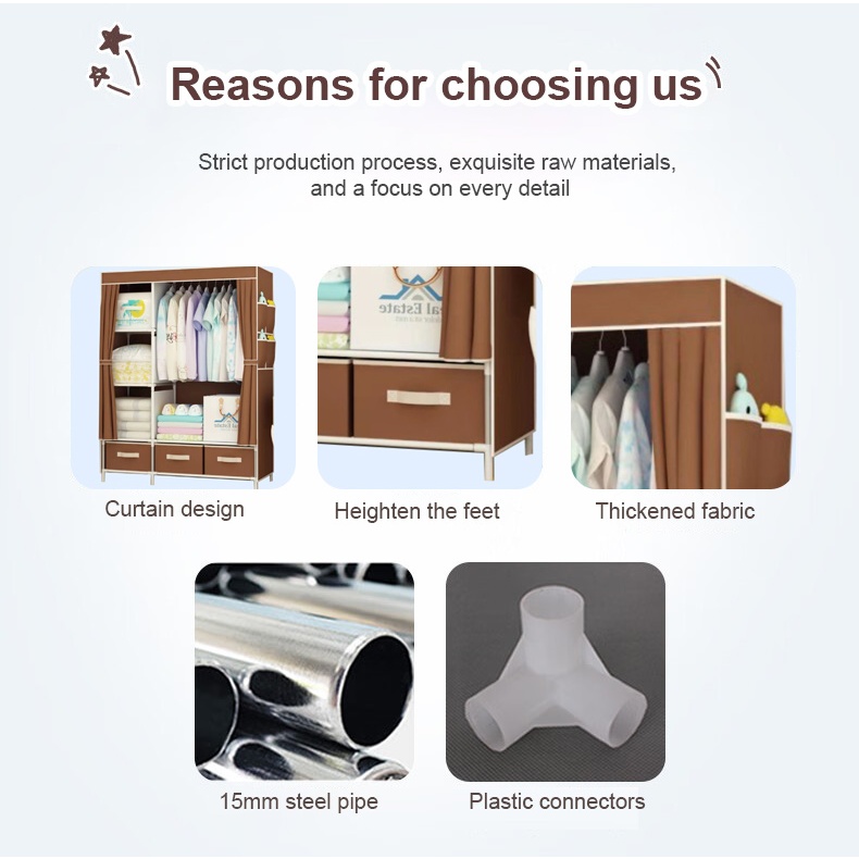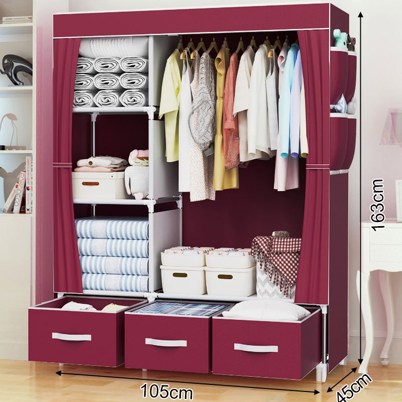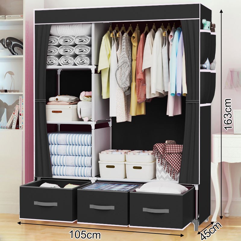 Lemari Pakaian Kain Portable Dengan Ritsleting Gantungan Anti Debu Serbaguna Hemat Tempat Lemari Jumbo Lemari Minimalis Kost