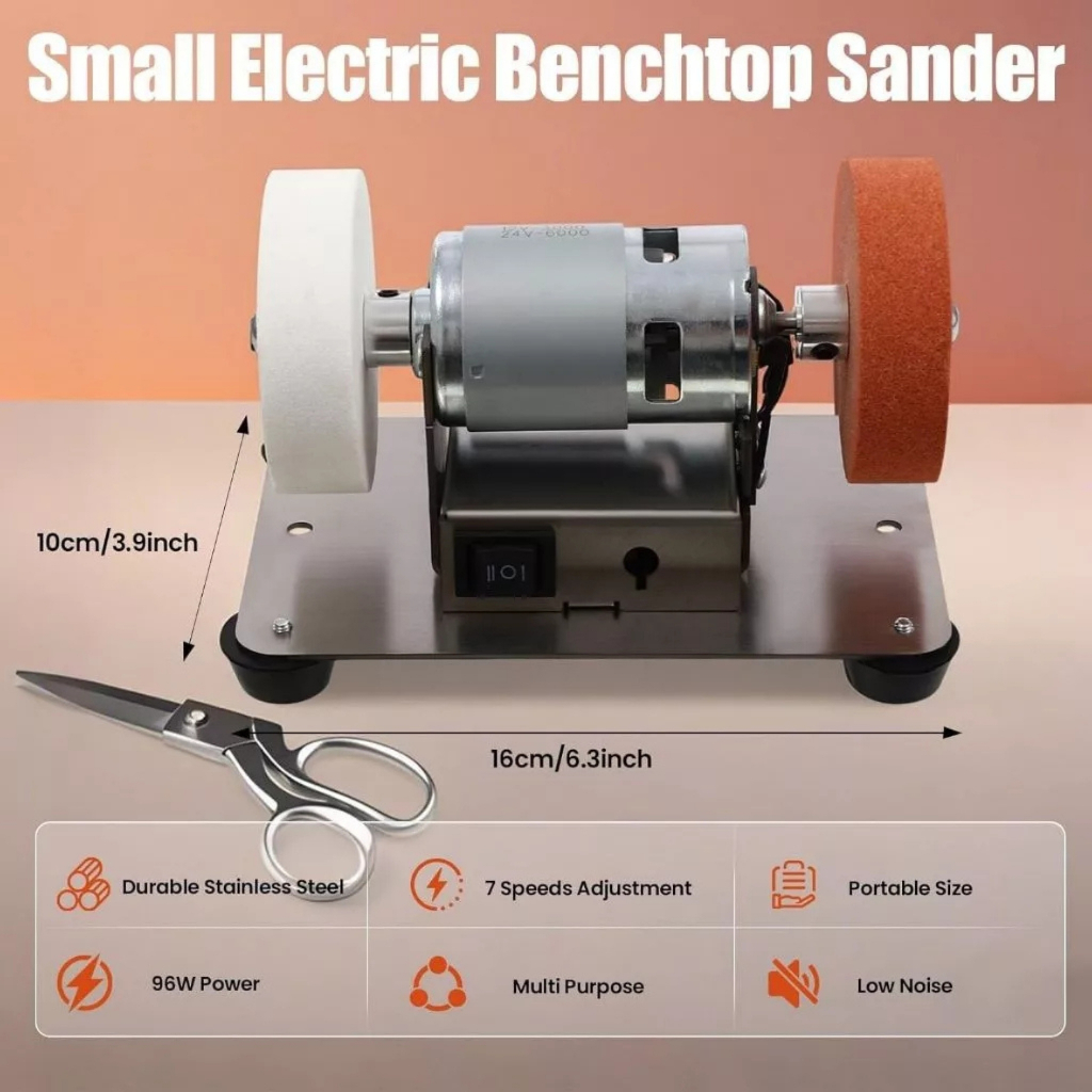 Mini Mesin Gerinda Meja 100W Penggerindaan Kasar dan Halus dengan Roda Gerinda Ganda Kiri Kanan Pemolesan Listrik Rumah