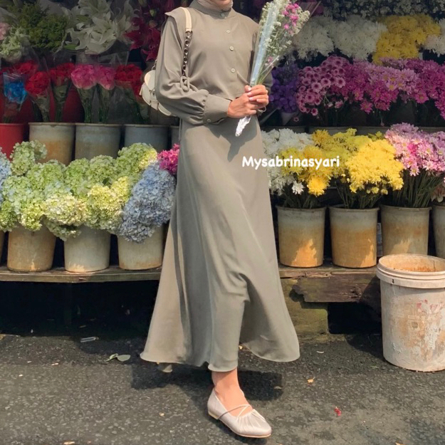 TIFFANY DRESS by SABRINA - GAMIS POLOS VEST ROMPI BAHAN SHAKILA SILK / COKSU SEAGREEN / SIZE M XL