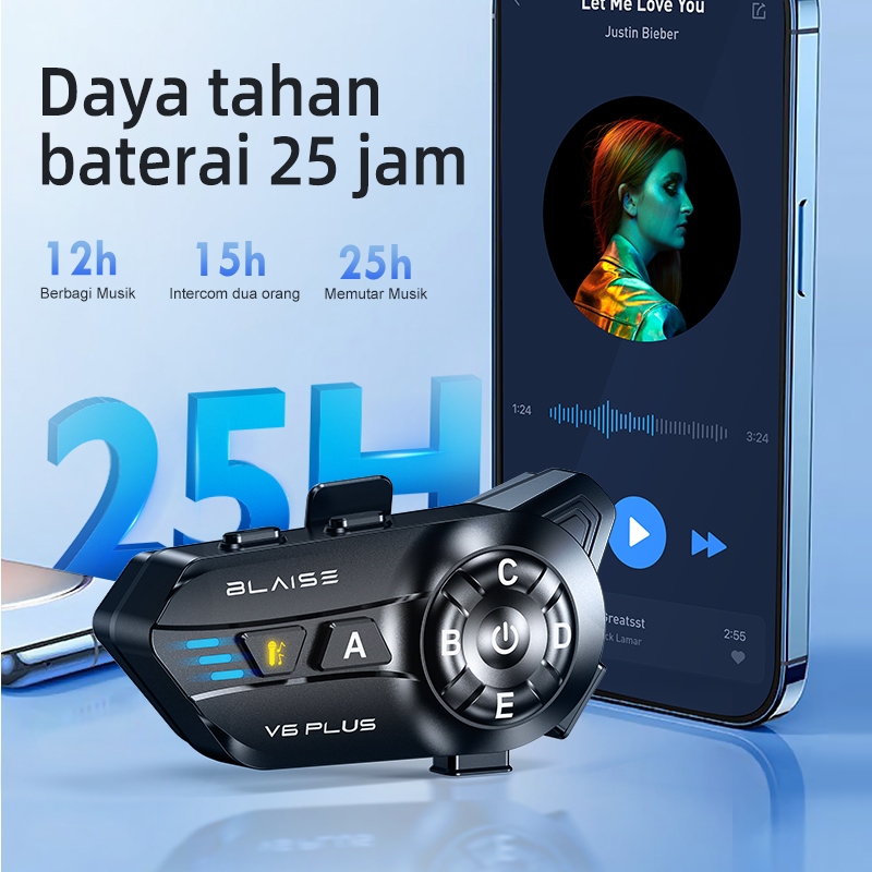 Blaise V6 Plus Intercom Helm Headset Interkom Buat 6 Riders Musik Sharing Waterproof Audio Electronic Motorcycle Walkie