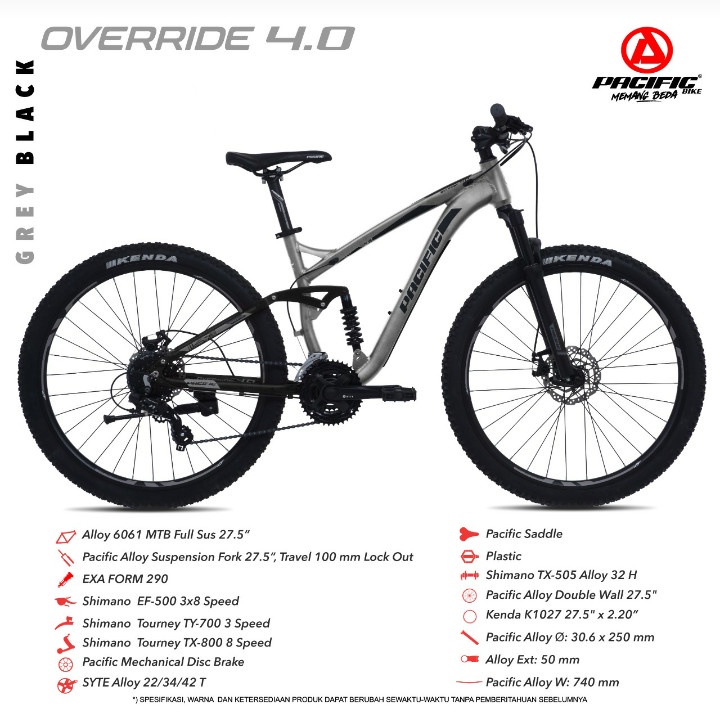 sepeda gunung 27,5" PACIFIC OVERRIDE 4.0 Alloy suspensi 24 speed ori
