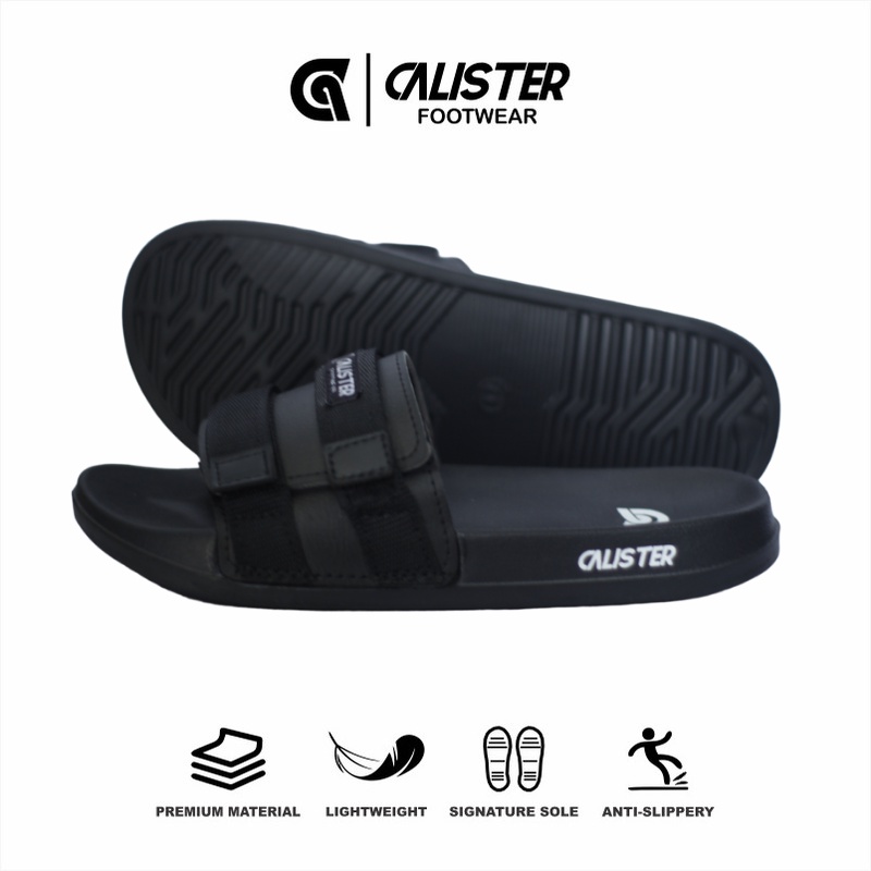 Sandal Pria Selop Distro Calister Strap Aesthetic Hitam