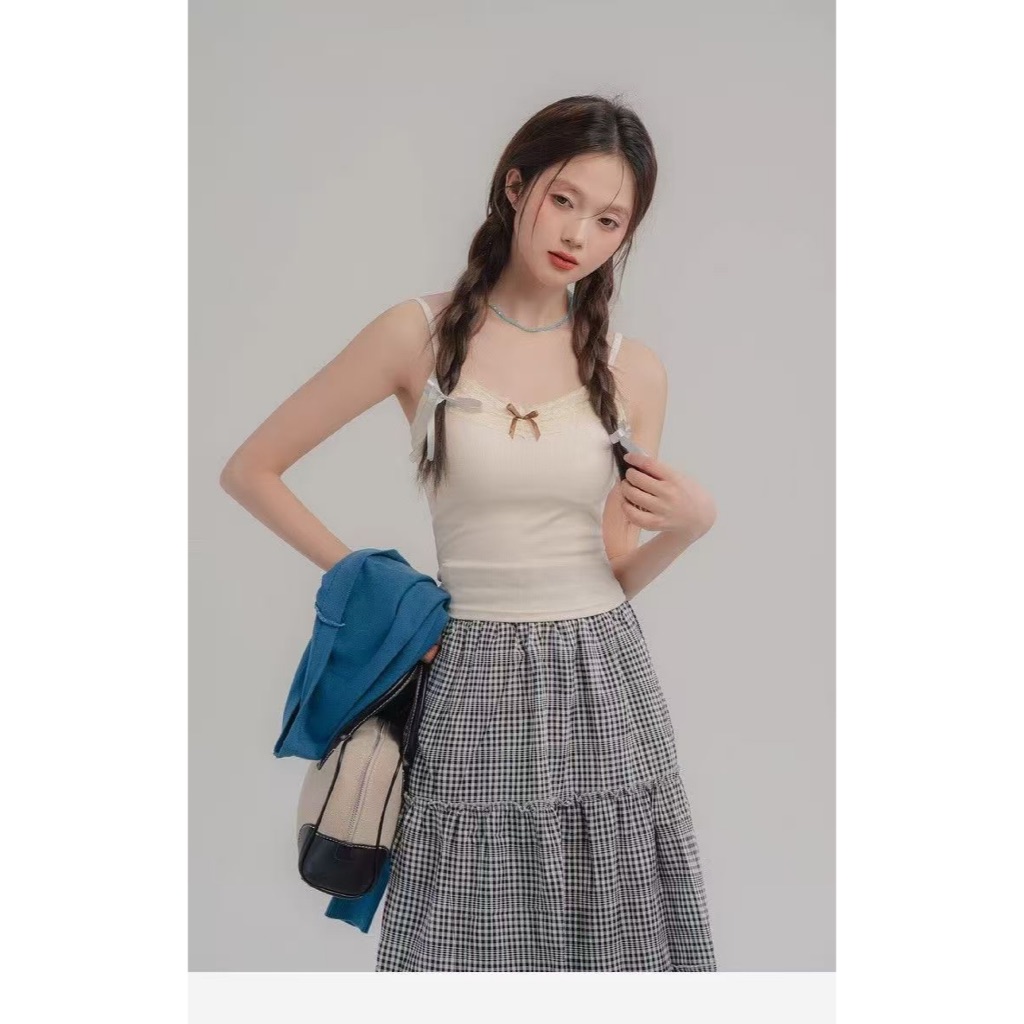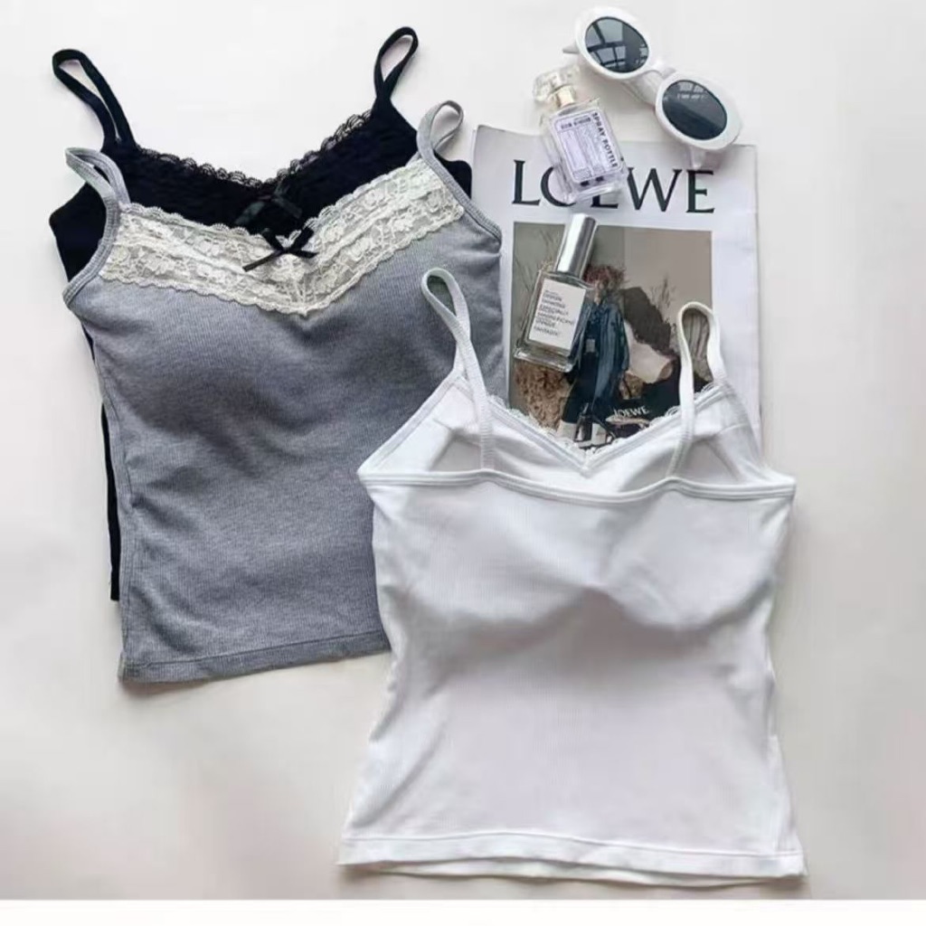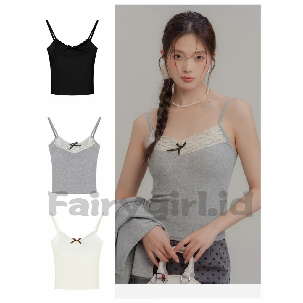 Fairygirl.id Atasan Tank Top Wanita Renda Pita, Gaya Korean Cute Sexy, Slim Fit, Fashion Musim Panas