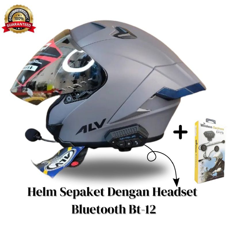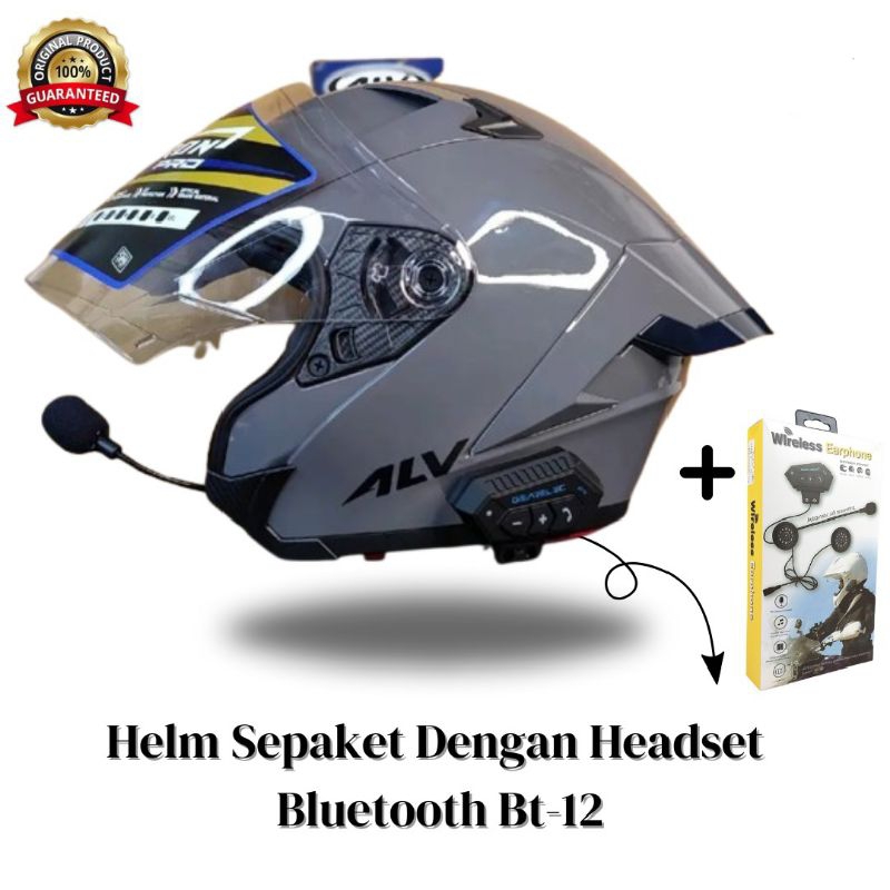 (Sepaket) Helm Alv Ultron Pro Dengan Intercome Atau Headset Bluetooth Bt-12, 100 PERSEN , Motorcycle Ganteng.