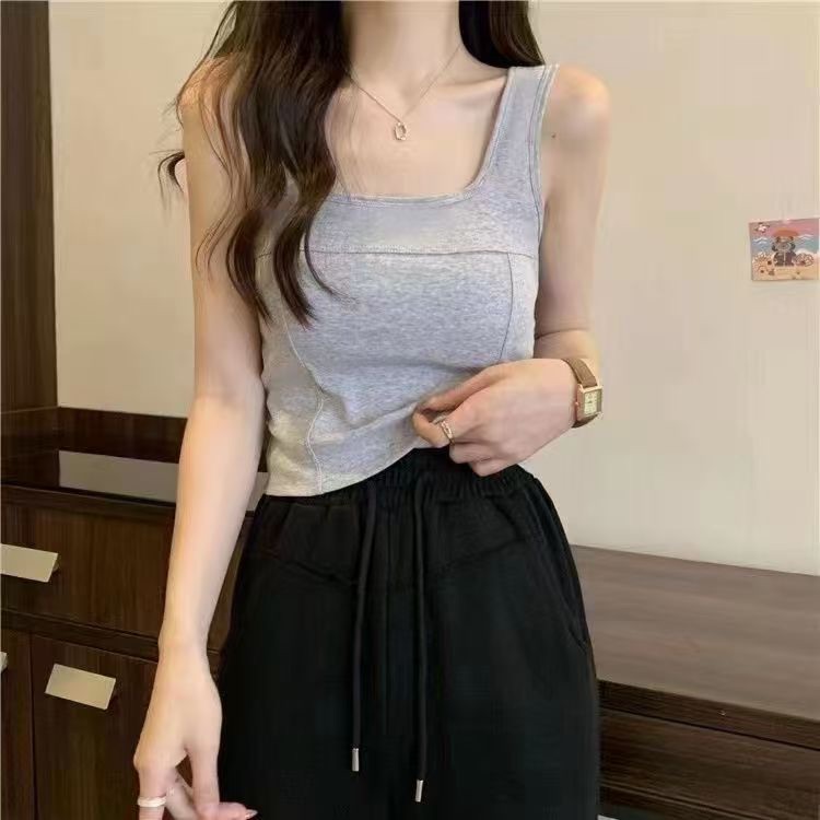 Fairygirl.id Atasan Tank Top Wanita, Pad Dada, Gaya Korea, Polos, Tanpa Lengan, Bisa Dipakai Dalam/Luar