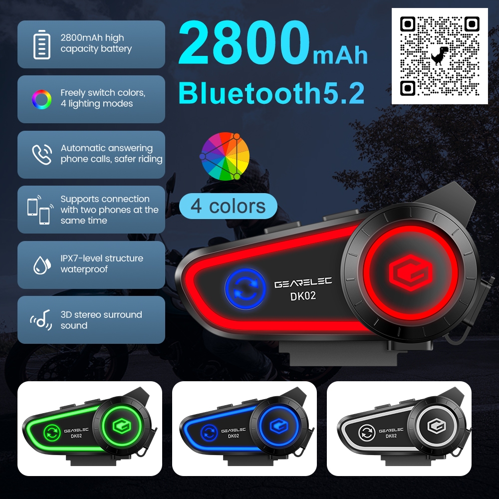 Gearelec Intercom Bt5.2 Dk02 Helm Bluetooth Headset Hands Free Call Kit Ipx7 Tahan Air 2800Mah