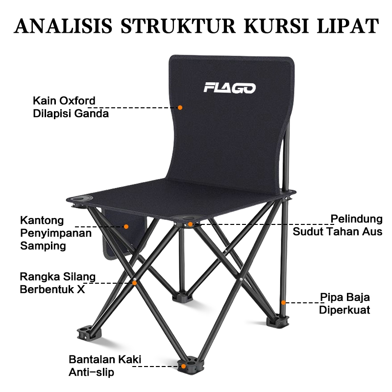 FLAGO SPORT Kursi Lipat Outdoor Serbaguna Kursi Lipat Camping Tebal Dan Tahan Aus Penahan Beban 200kg