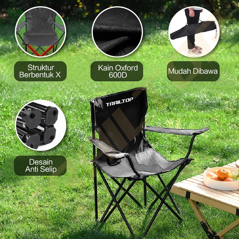 TrailTop Kursi Lipat Outdoor Sandaran Tangan Kursi Camping Portable Folding Chair Beban 120kg