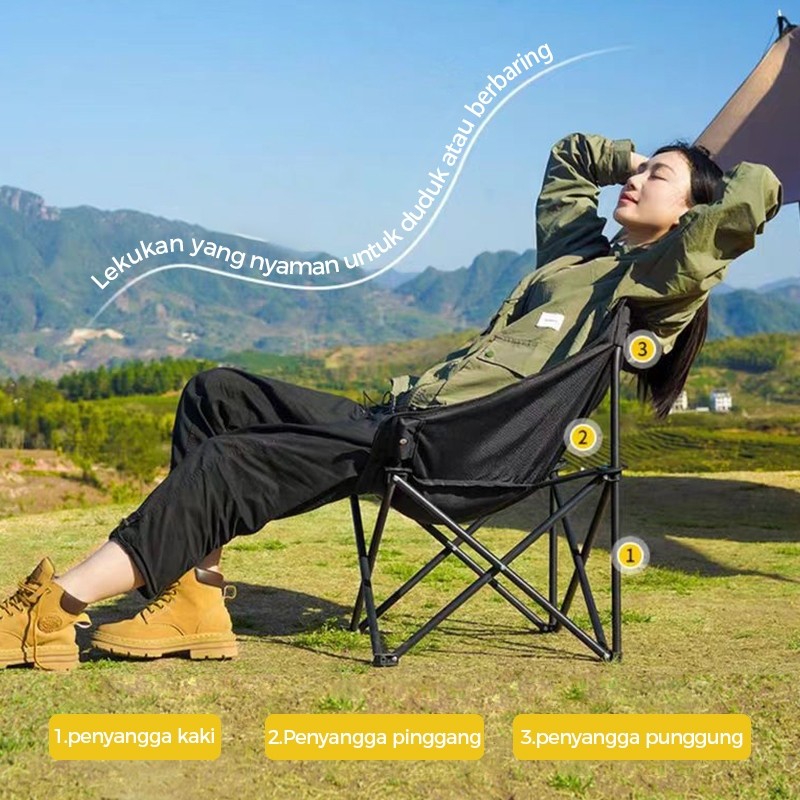Kursi Lipat Portable Outdoor/ Kursi Santai/ Kursi Camping Bulat Lebih Kuat/ Lebar 59cm