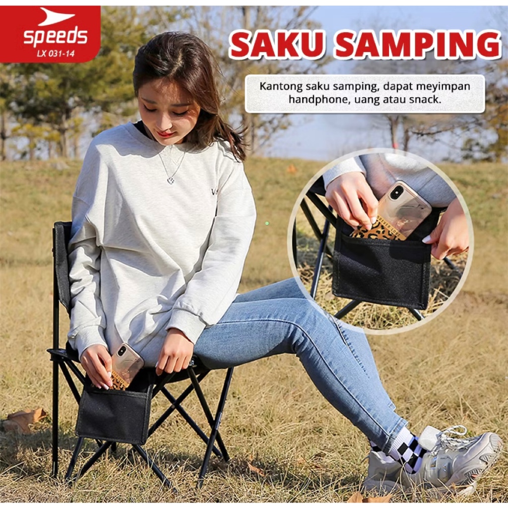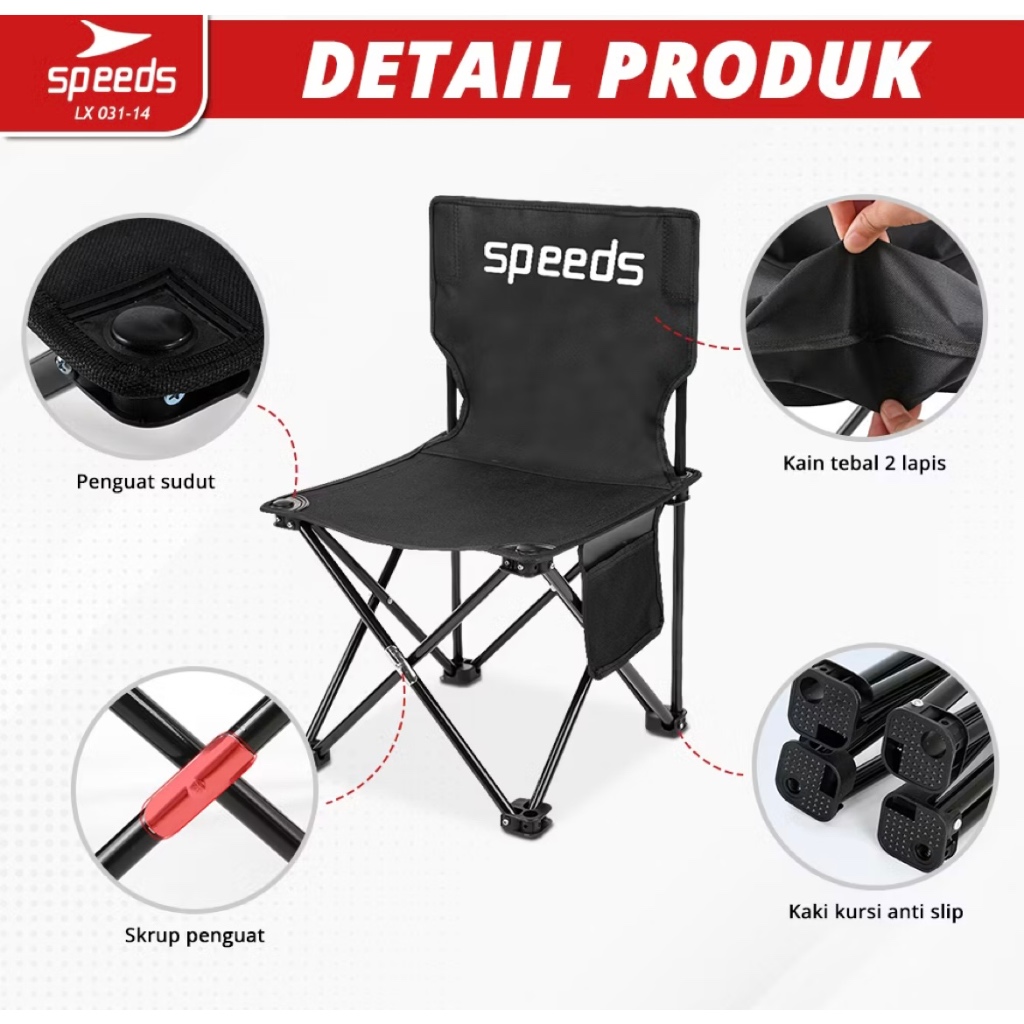 SPEEDS Kursi Lipat Outdoor Hitam Camping Portable Bangku Folding Chair Gunung Kemah Mudah Dilipat