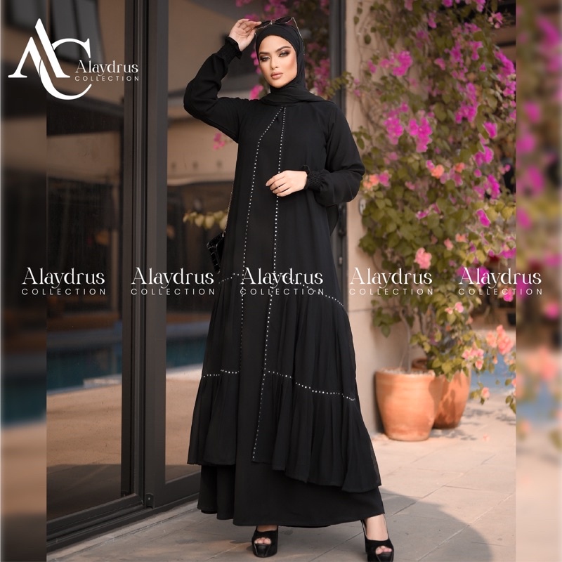 Alaydrus Collection Abaya Hitam Turkey Gamis Syari Bahan Jetblack Dan Chiffon Dress Arab Saudi 851