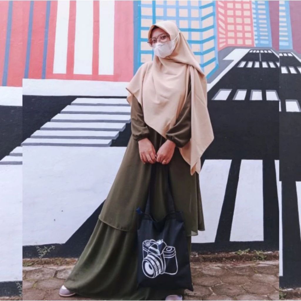 Gamis Malaysia Terbaru Anggun Polos Model Lebaran Wanita Dewasa - Ceruty BabyDoll Full Puring