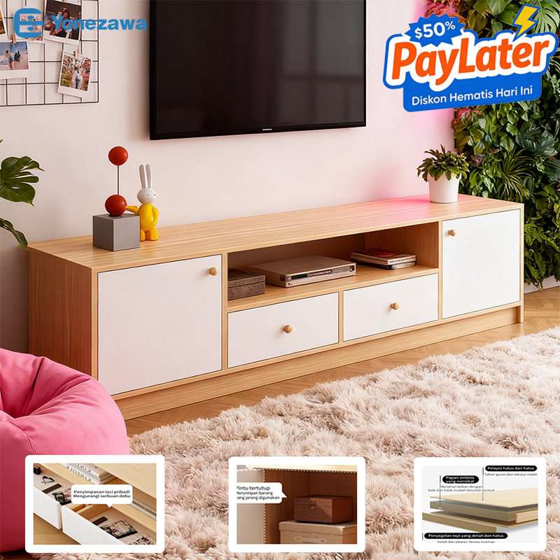 YONEZAWA Meja TV Kayu Minimalis Serbaguna 140cm Modern Lemari TV Dengan Pintu Buffet Lemari Penyimpanan Minimalis Lemari Ruang Tamu Meja Ruang Tamu Serbaguna