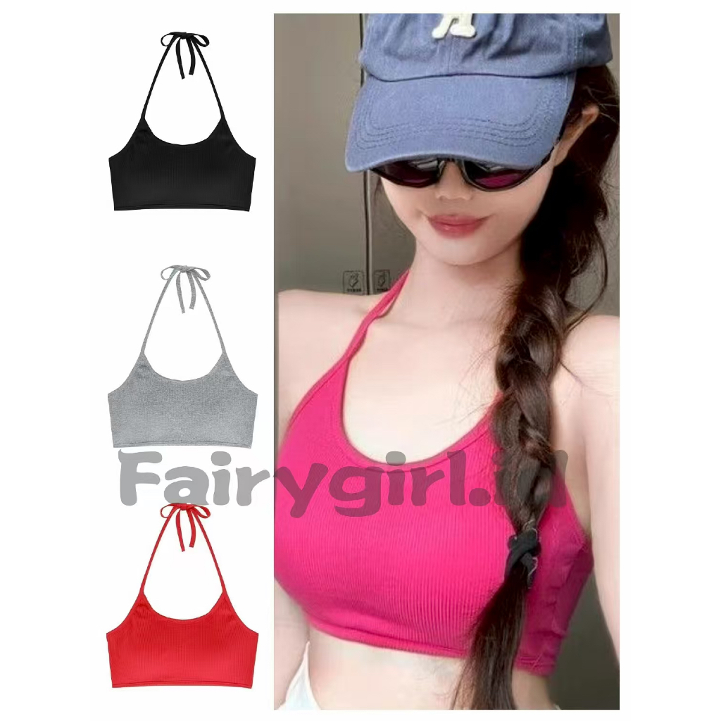 Fairygirl.id Tank Top Wanita Seksi Model Halter, Dilengkapi Bra Pad, Bisa Dipakai Dalam & Luar, Bustier Tipis Nyaman dan Modis