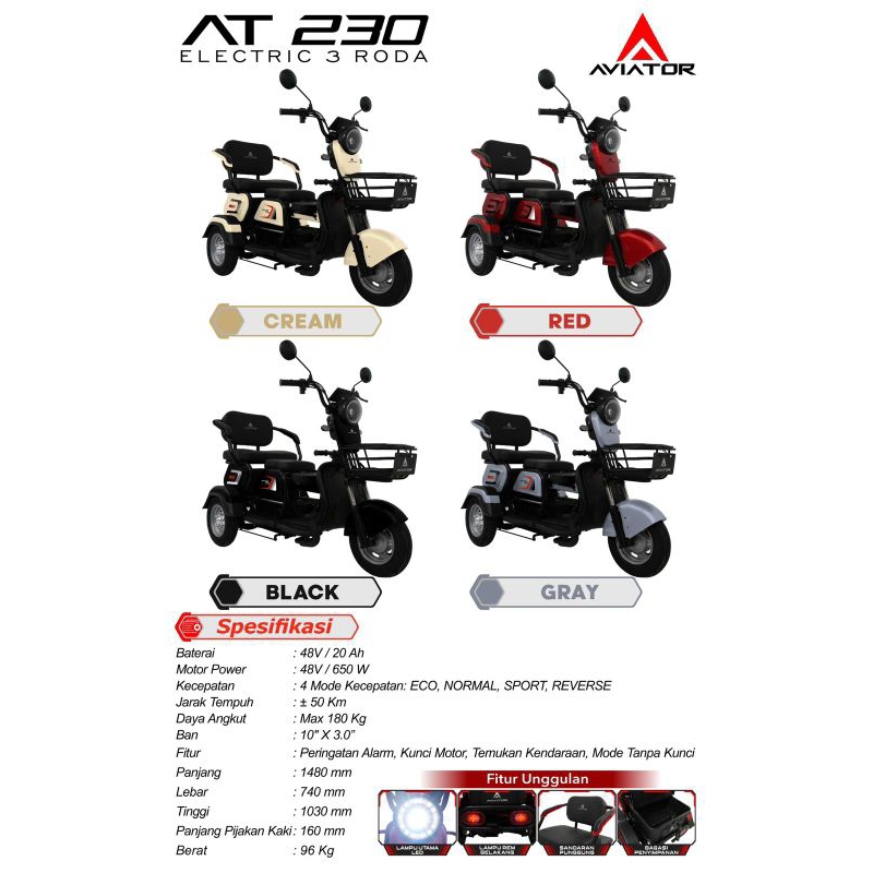 Sepeda Listrik Roda 3 Aviator AT 230 by Pacific