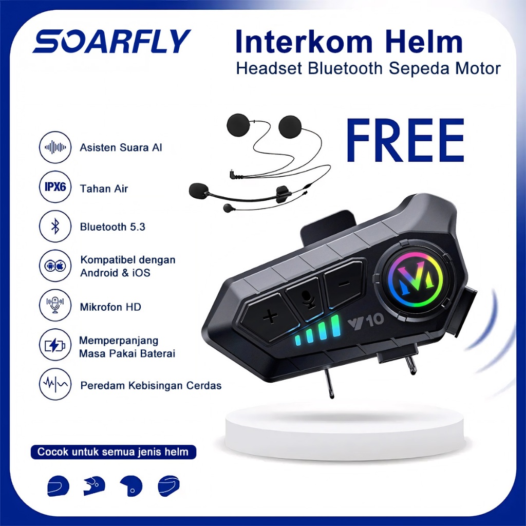 Intercom Y10 Headset Bluetooth 5.3 Helm Sepeda Motor Bluetooth Hands Free Call Kit Ipx6 Tahan Air
