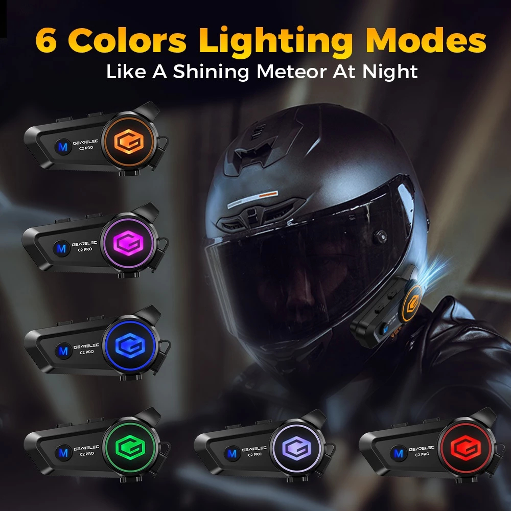 Gearelec C2 Pro Motorcycle Helmet Intercom Headset 2 Riders 50M Intercom Support Music Sharing While In Intercom