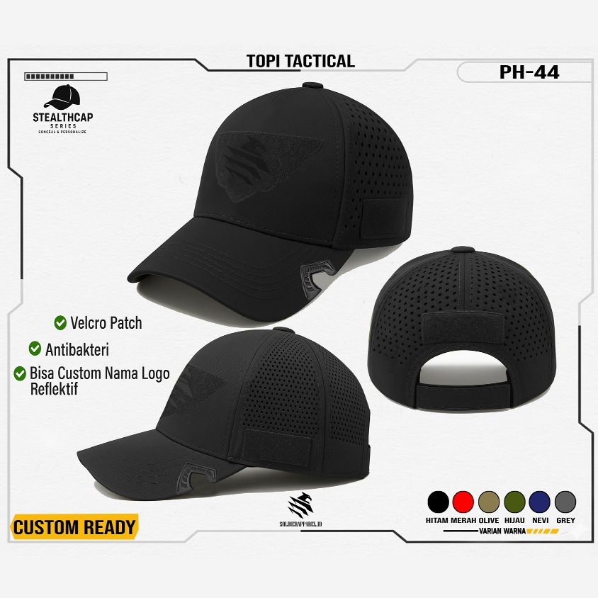 Topi Tactical Pria l Topi Custom Reflektif – StealthCap –, Bisa Custom Logo & Nama