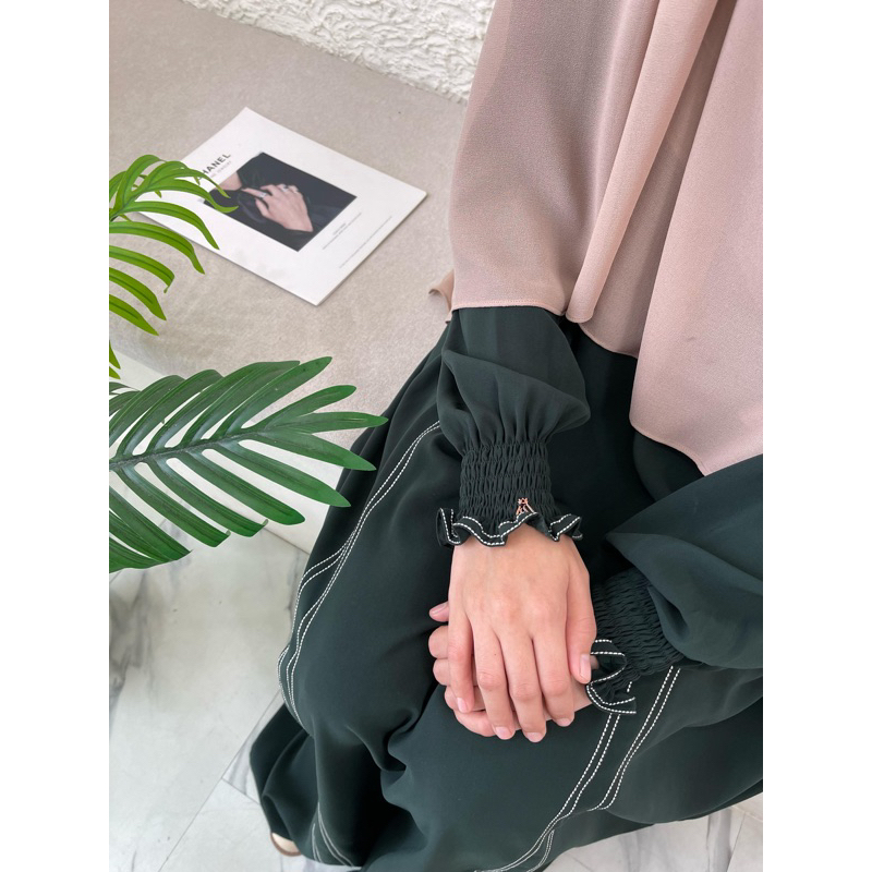 MARRAKESH DRESS - Abaya dengan jahitan stitch bahan sarmala softer dan jetblack