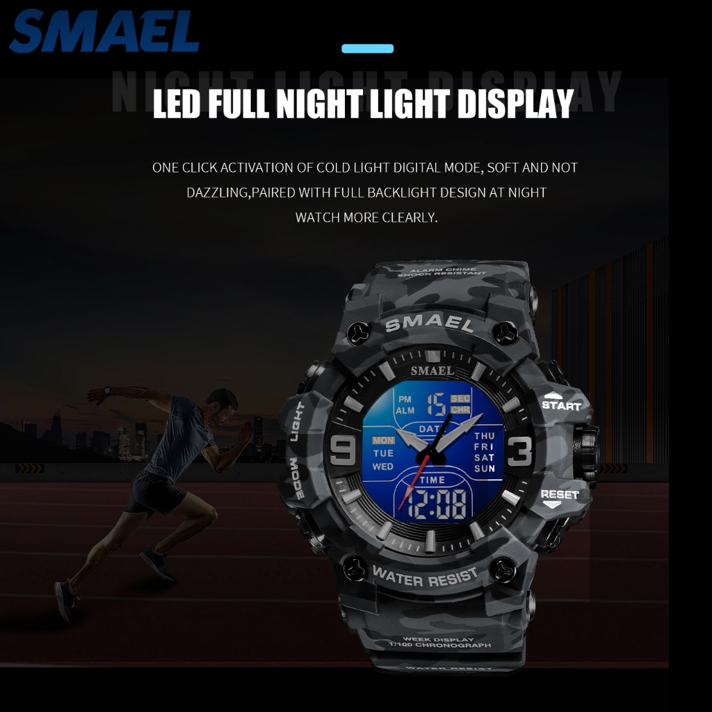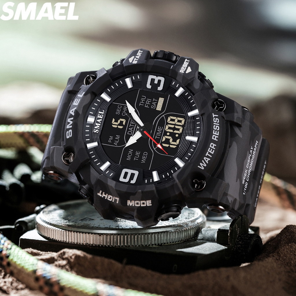 SMAEL 8049MC Jam Tangan Elektronik Outdoor Tahan Air Kamuflase Olahraga Pencahayaan Malam Taktis Pria Militer Arloji Pen