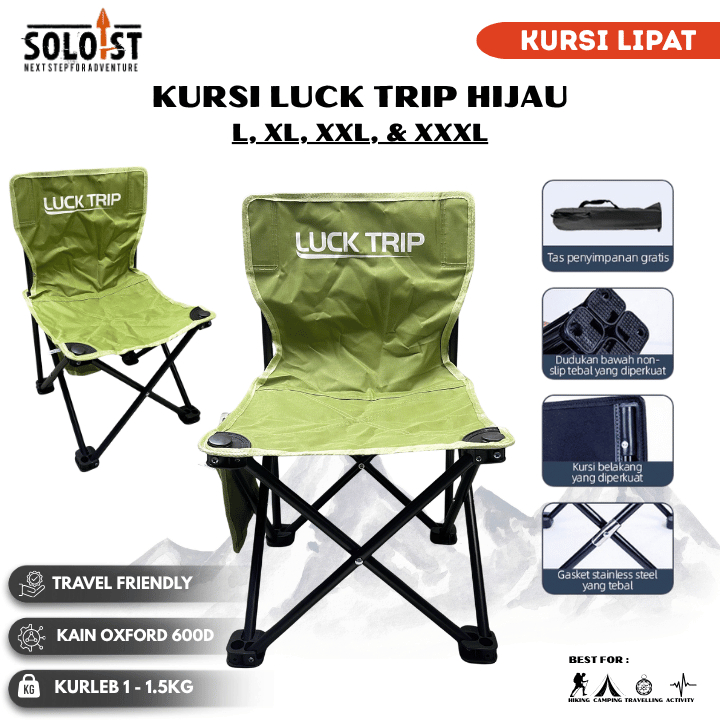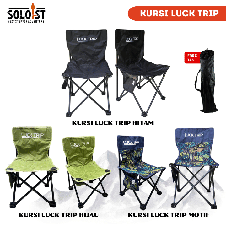 Lucktrip Kursi Lipat Outdoor Portable Folding Camping Chair Bangku Mancing Piknik Portabel Free Tas