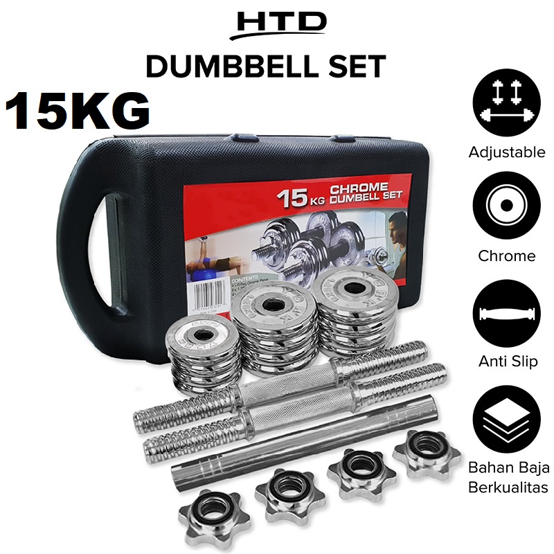 HTD Sport Dumbbell Barbel Set Box 15Kg Full Chrome Alat Olahraga Angkat Besi Dumbell Box