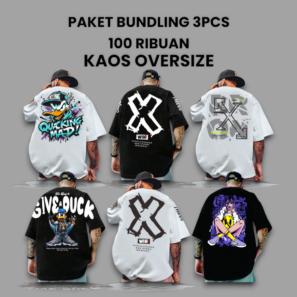 PROMO KAOS OVERSIZE 3PCS 100RIBUAN PAKAIAN UNISEX OUTFIT KEREN KEKINIAN KASUAL TERLARIS