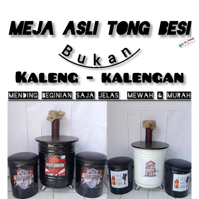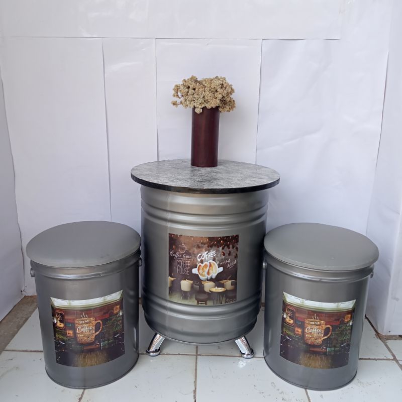 Paket 1 Set Kursi Tong Meja Drum Besi Mewah Kursi Cafe Kursi Teras (2 Bangku + 1 Meja)