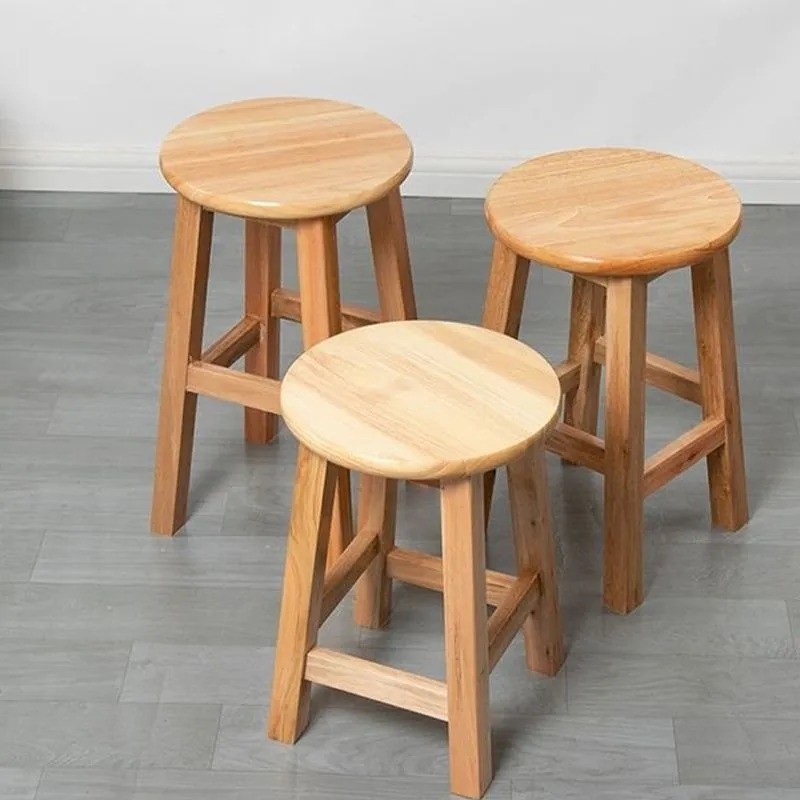 Kursi Cafe Kayu Pinus Bulat Natural - Tinggi 45cm & 60cm - Murah, Berkualitas, Nyaman