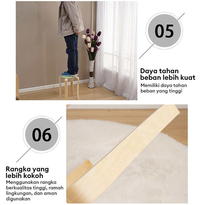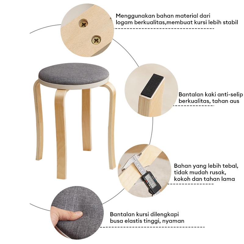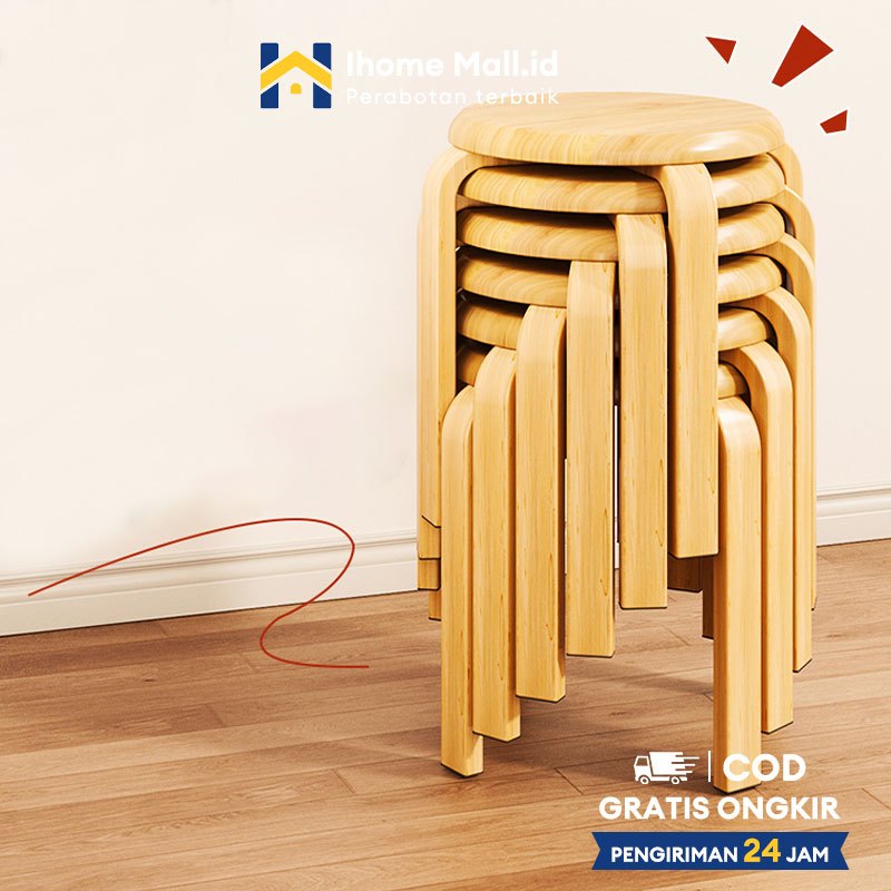 IH Bangku Bakso Kayu Kursi Cafe Bulat Kursi Makan Minimalis Kursi Dapat Ditumpuk