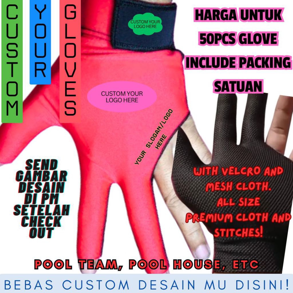 50PCS-Termurah Custom Logo Glove Billiard Dengan Velcro Perekat
