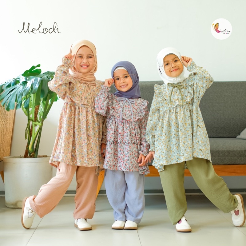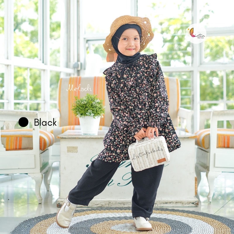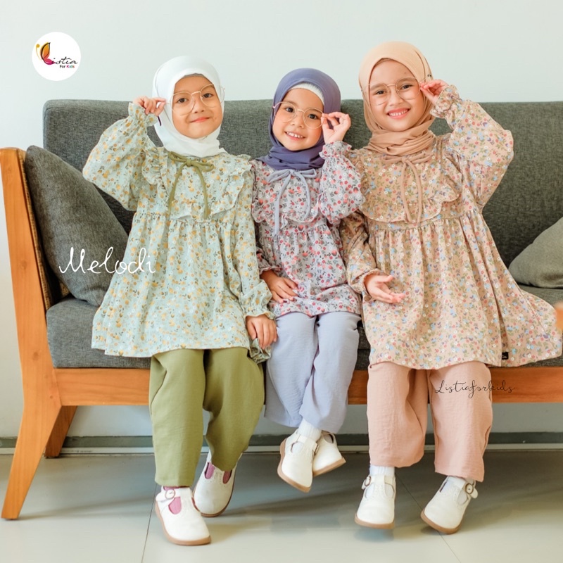 One Set Anak Perempuan Melodi Setelan Celana Anak Perempuan 0-10 Tahun Crinkle Airflow Premium By Listiaforkids