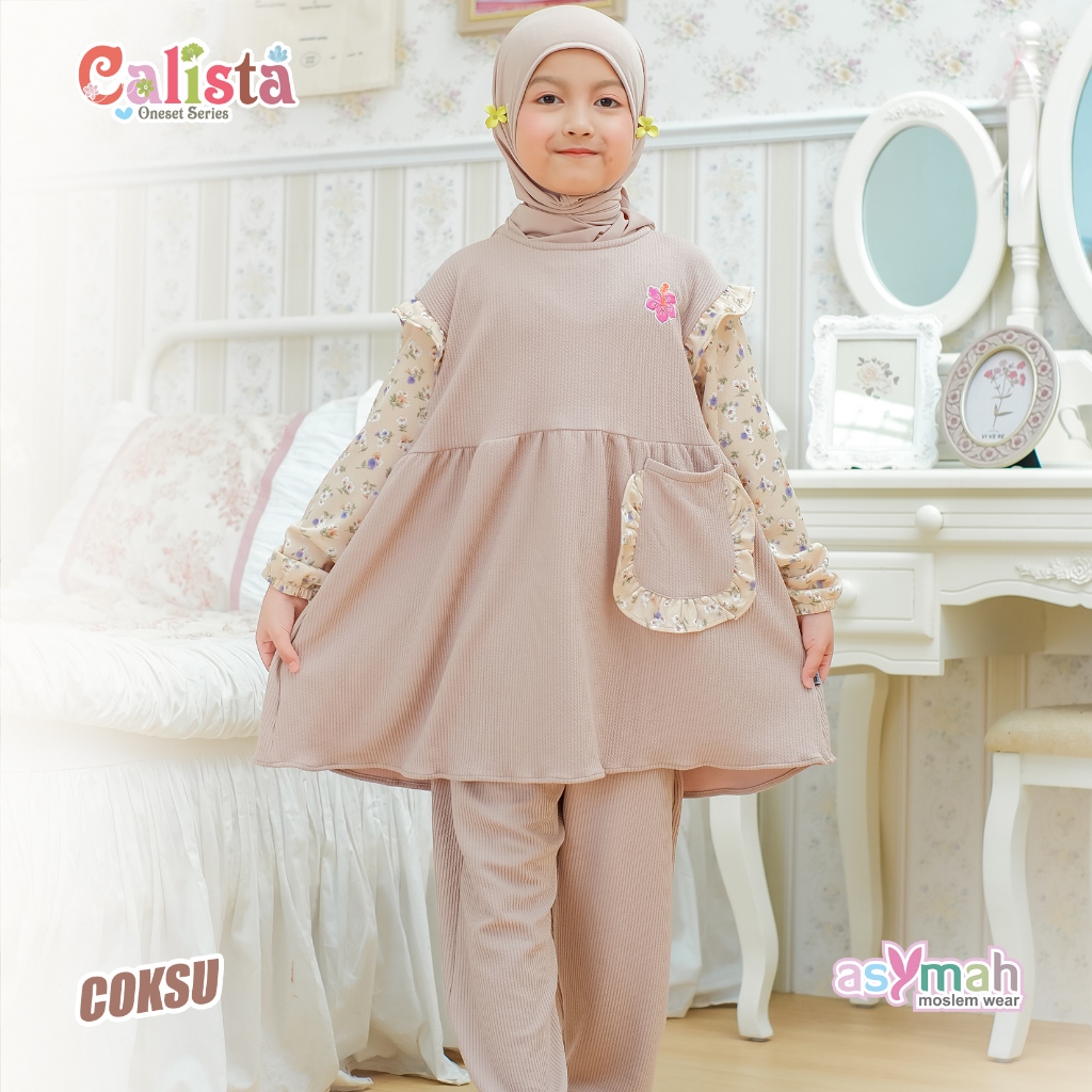 One Set Anak Cewek Asymah Bahan Misby Adem Premium Quality Calista Oneset