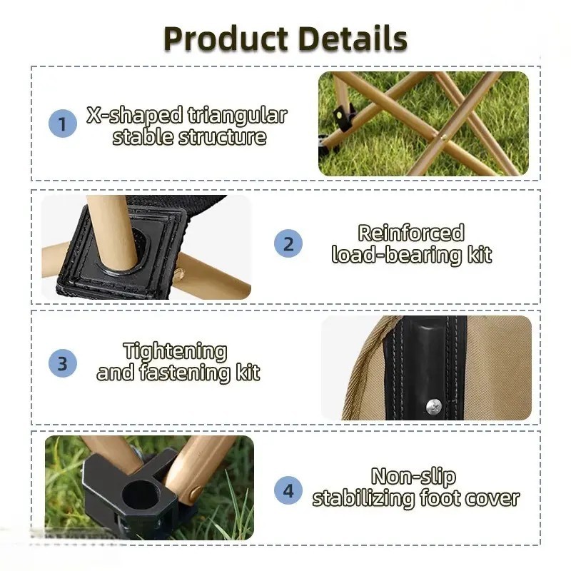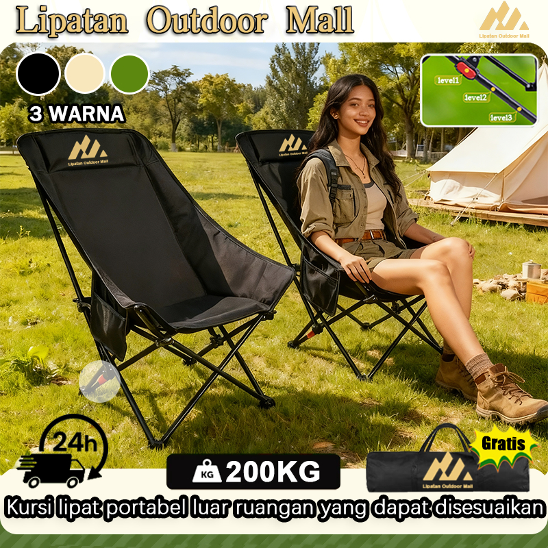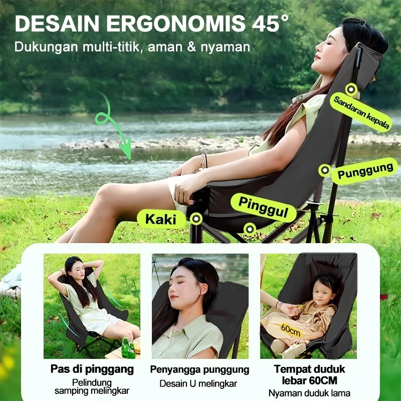 Kursi lipat portabel luar ruangan yang dapat disesuaikan Kursi Lipat Sandaran Tinggi Bisa di Atur dengan Sandaran Kepala Busa Kursi Camping Kuat Lebar Tebal Beban 200kg