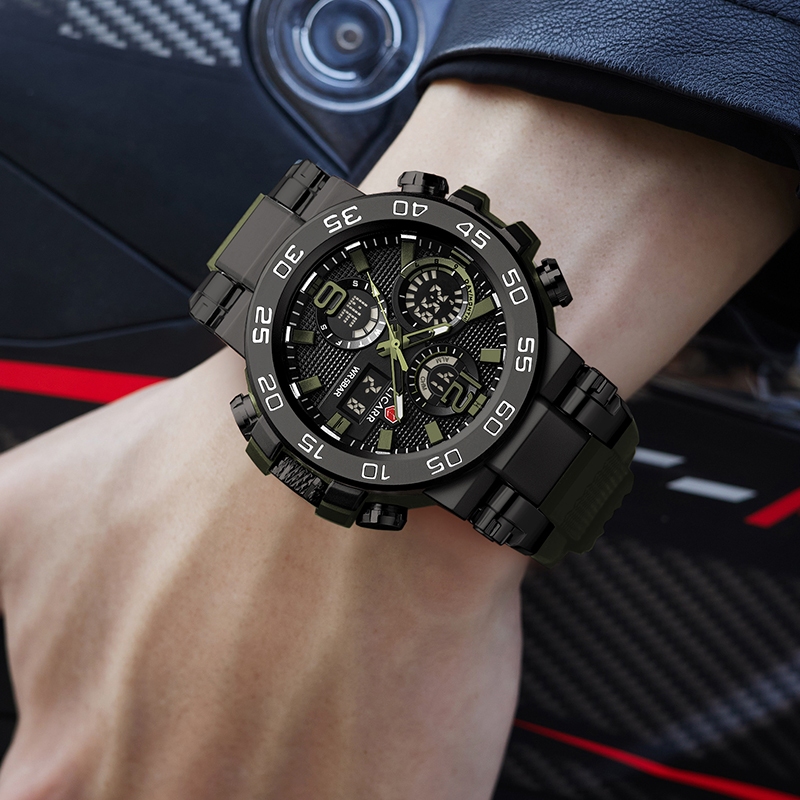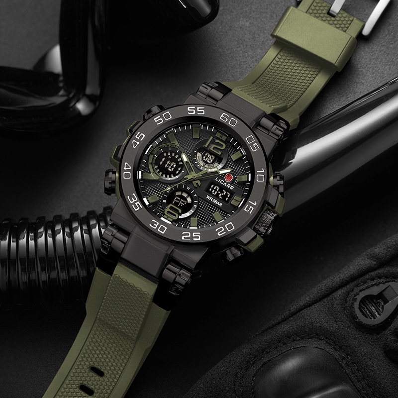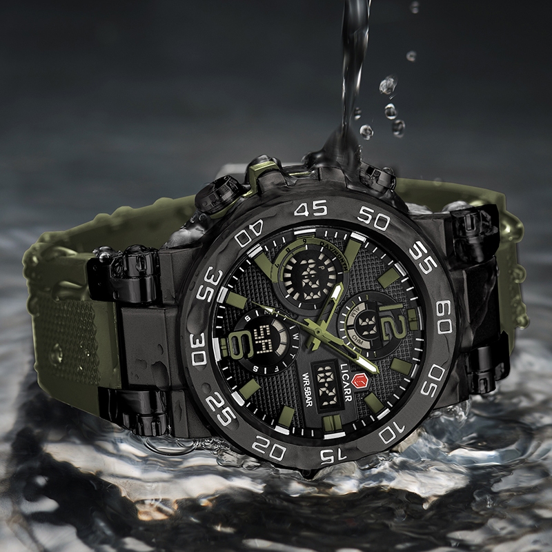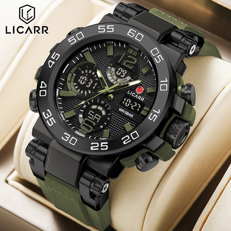 LICARR Tentara Hijau Jam Tangan Multifungsi Original Analog Digital Jam Tangan Pria Keren Cowok Merek Kuarsa Olahraga Sa