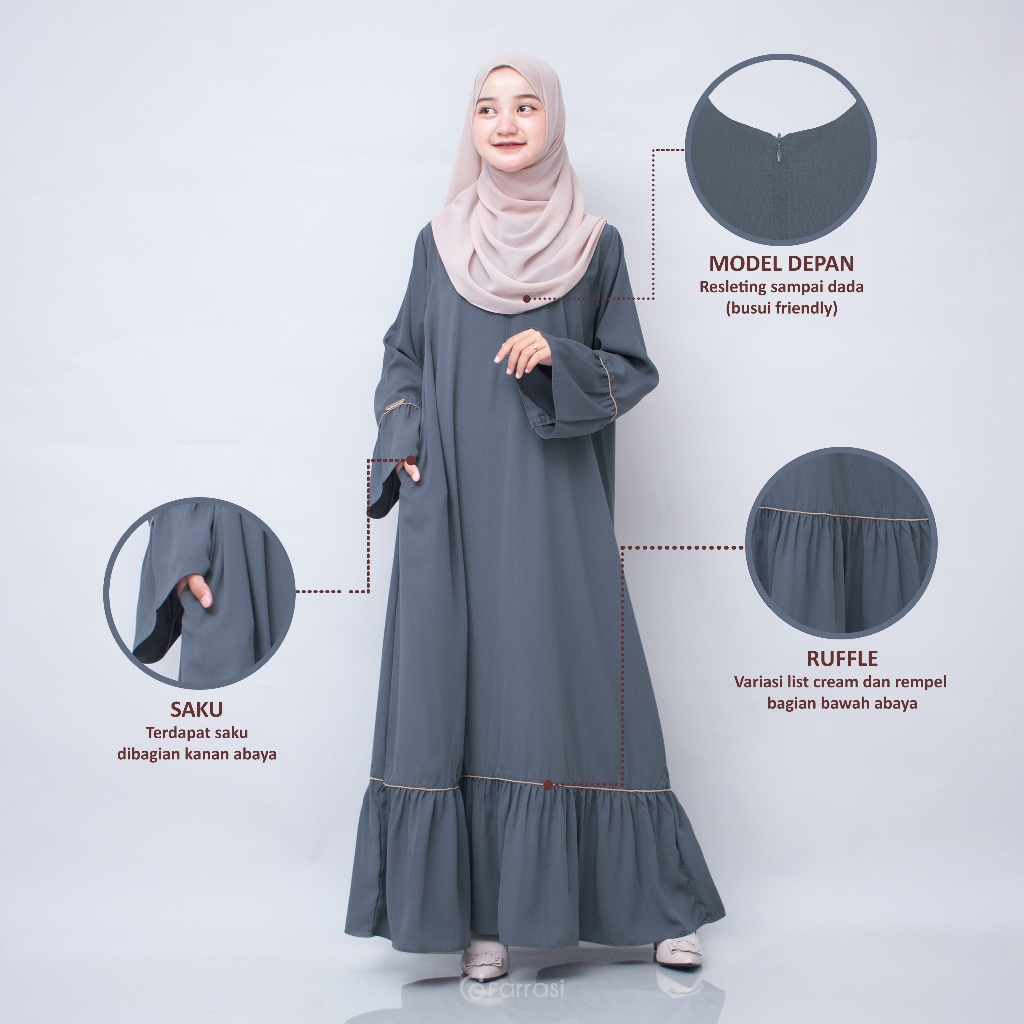 Farrasi Abaya Nafeeza Wolfis Resleting Depan